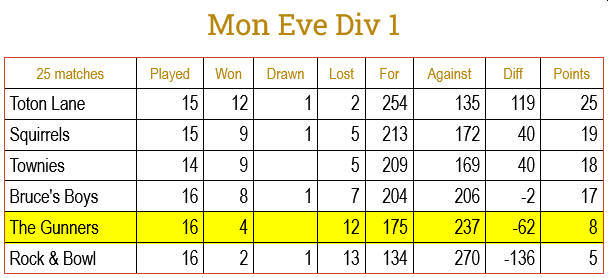 Monday Evening (6:30pm) Div 1 Fours |